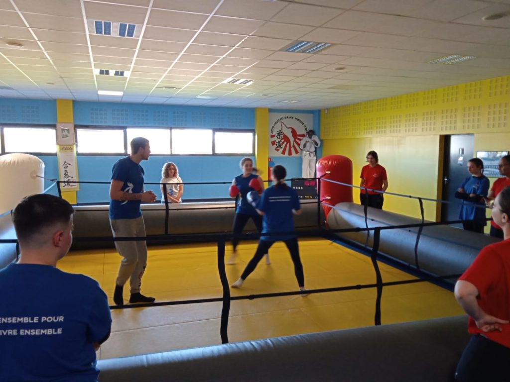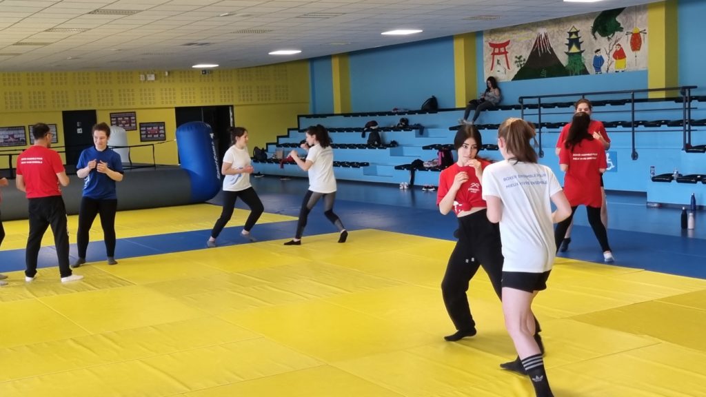 Tout d’abord, les 14 et 15 avril à Saint-Pierre d’Oléron se sont déroulées les journées des « Filles à l’Honneur » autour des valeurs olympiques. Les apprenties présentes ont ainsi pu s’initier à cette pratique de la boxe grâce à l’intervention millimétrée de Bob CHADDI et des membres de l’Equipe Régionale de boxe de Nouvelle-Aquitaine. A travers de nombreuses situations ludiques, les filles ont découvert une facette méconnue de l’activité et cela a suscité une curiosité certaine.